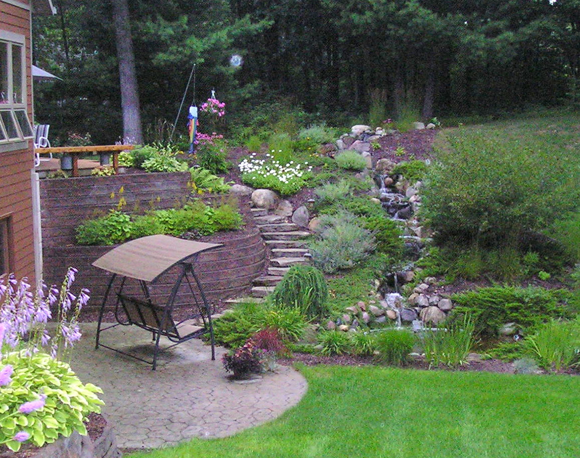 We have years of experience working with water features and can make your dreams a reality. Our most popular features are small, tranquil ponds in your landscape, often with a small waterfall circulating the water and adding that rushing sound we all love. You can choose the size pond you’d like, add water plants like cattails and lily pads. Swimming koi are a bright, delightful, and popular addition that will delight children and adults alike. Add a bench or hammock nearby and wile away summer afternoons to the delicate sound of quiet splashing.