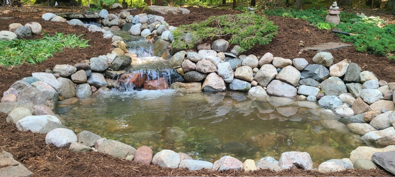 If you love the sound of a waterfall but don’t necessarily have the space for a pond, we design and install pondless waterfalls also. These waterfalls drop into a stone-covered collection pan and pump it back up to the top of the falls.